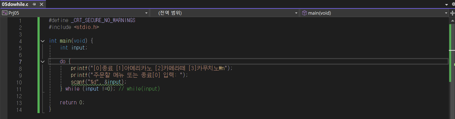 - do while 문의 종료를 나타내는 세미콜론; 필요