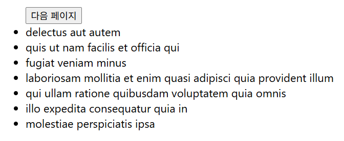 | jasonplaceholder에서 id값을 가져와 출력 버튼을 누를 때마다 id값을 하나씩 추가해 다음 id값을 출력한다 |