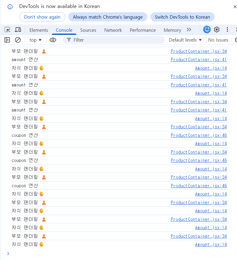 -> Amount만 리랜더링 되는 게 아니라 Coupon까지 리랜더링되는 사이드이펙트 발생