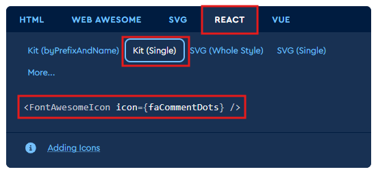 REACT > Kit(Single)의 아이콘 이름만 복사해 사용