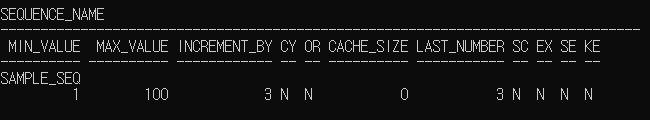 -> alter sequence sample_seq maxvalue 100 increment by 3;