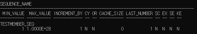-> 캐시 사이즈 0, 시작번호 1, 증가 간격 1로 설정
