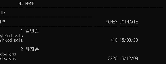 간격조절방법 : col 항목명 for a크기; (크기는 a10, a5 와 같이 지정)