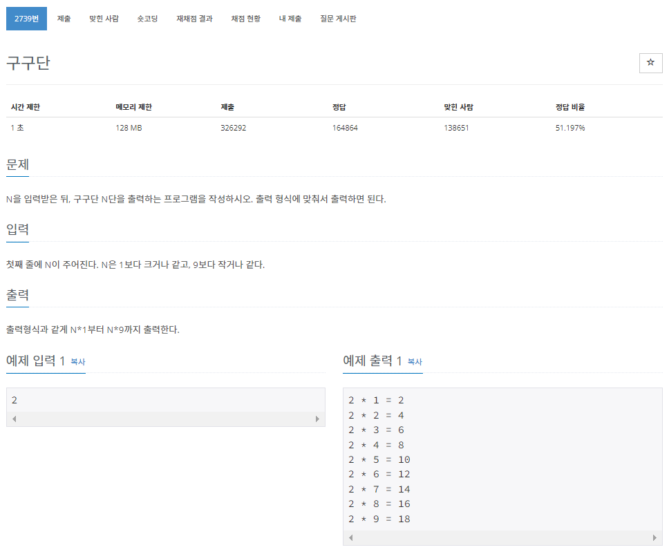 3단계 반복문 1단계 2739 구구단 문제입니다