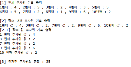 System.out.println("[3] 던져진 주사위의 총합 : " + sum);