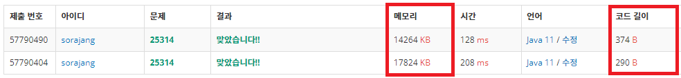 이 짧은 코드 내에서도 메모리와 코드 길이 차이가 나는 것을 확인할 수 있다