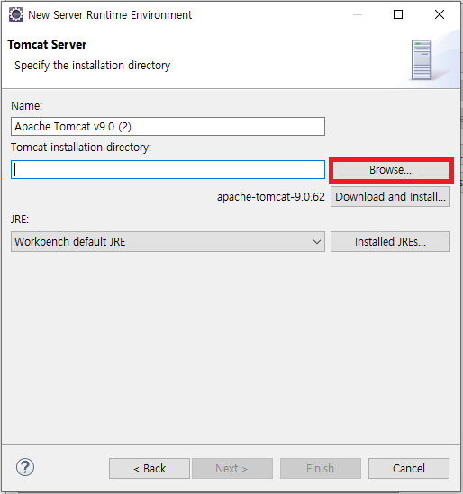 Browser > C:\Tomcat 9.0(Tomcat 폴더 경로 선택) > Finish