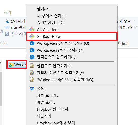 업로드하고자 하는 폴더에서 마우스 우클릭하여