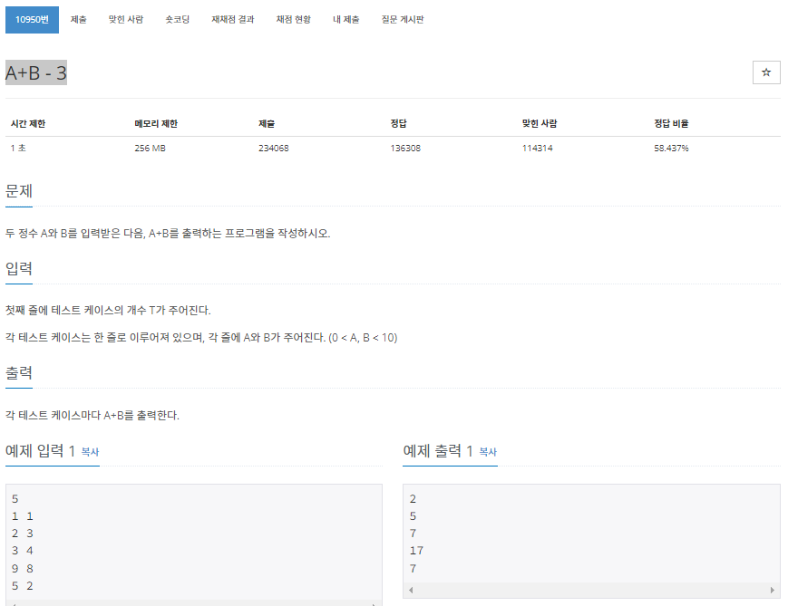 백준 코딩테스트 단계별로 풀어보기 3단계 반복문 3단계 8393 합 문제입니다 https://www.acmicpc.net/problem/8393 8393번: 합 n이 주어졌을 때, 1부터 n까지 합을 구하는 프로그램을 작성하시오. www.acmicpc.net https://www.acmicpc.net/step 단계별로 풀어보기 단계별은 @jh05013님이 관리하고 계십니다. 단계제목설명정보총 문제내가 맞은 문제1입출력과 사칙연산입력, 출력과 사칙연산을 연습해 봅시다. Hello World!132조건문if 등의 조건문을 사용해 봅시다 www.acmicpc.net 문제 n이 주어졌을 때, 1부터 n까지 합을 구하는 프로그램을 작성하시오. 입력 첫째 줄에 n (1 ≤ n ≤ 10,000)이 주어진다. 출력 1..
