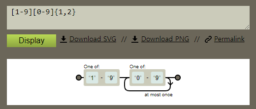 // [1-9] 1자리수 [0-9]{1,2} 0-9까지의 숫자 1자리 또는 2자리가 온다