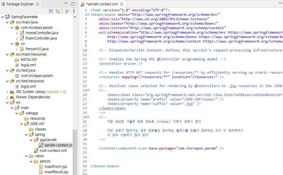: servlet-context.xml 파일의 자동 생성 경로 주석처리