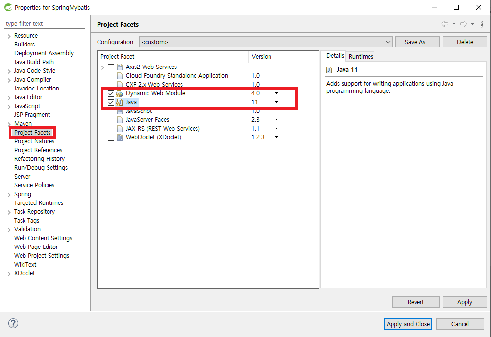 Properties > Project Facets