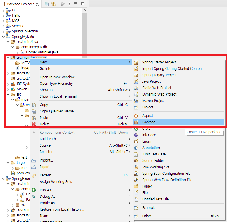 src/main/resources에 하위 2개 패키지 생성