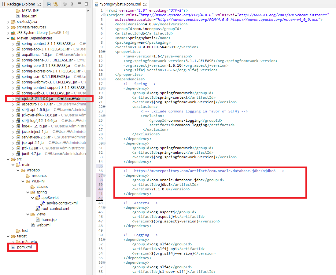 Maven Dependencies안에 ojdbc파일이 자동으로 생성된다