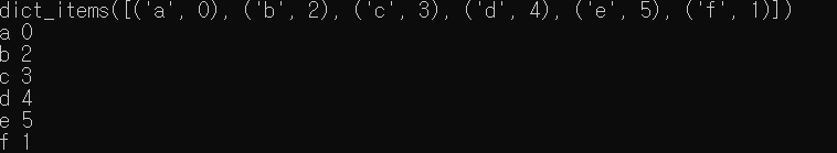 : 사전형의 모든 키-값의 쌍을 튜플로 반환