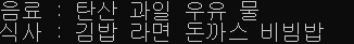 '식사':['김밥', '라면', '돈까스', '비빔밥']}