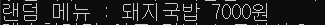 print("랜덤 메뉴 : {} {}원".format(menuList[ran][0], menuList[ran][1]))