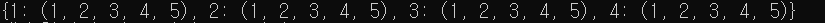 print(dic.fromkeys(ls,(1,2,3,4,5))) # value값이 된다