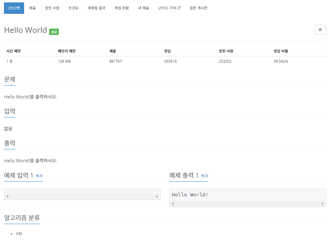 백준 코딩테스트 1-1-2557 Hello World 코딩 문제 java로 푸는 방법
