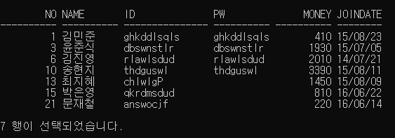 ex2. 회원 번호가 7이 아닌 회원을 검색하겠다