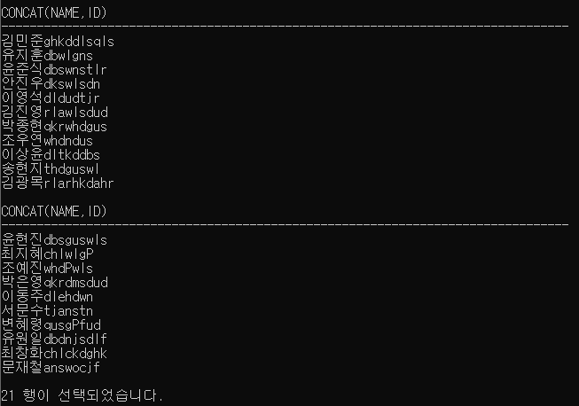select concat(concat(name, '님의 아이디 : '), id) from testmember;